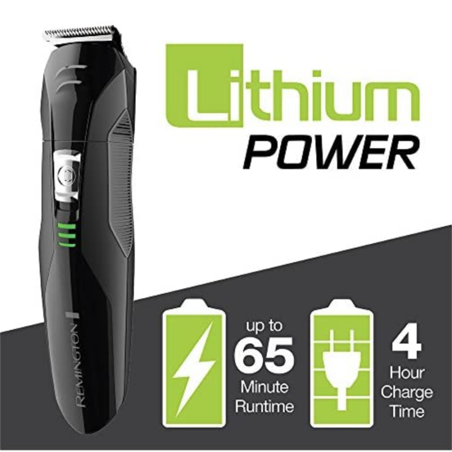 The Remington All-In-One Grooming Kit PG6025 is a Lithium Powered Grooming Kit gives you the power of precision with complete versatility for all of your grooming needs. The Remington grooming kit includes: a full- size trimmer; foil shaver; nose, ear and detail trimmer; hair clipper comb with 8 length settings; three beard and stubble combs; and a storage/travel pouch.