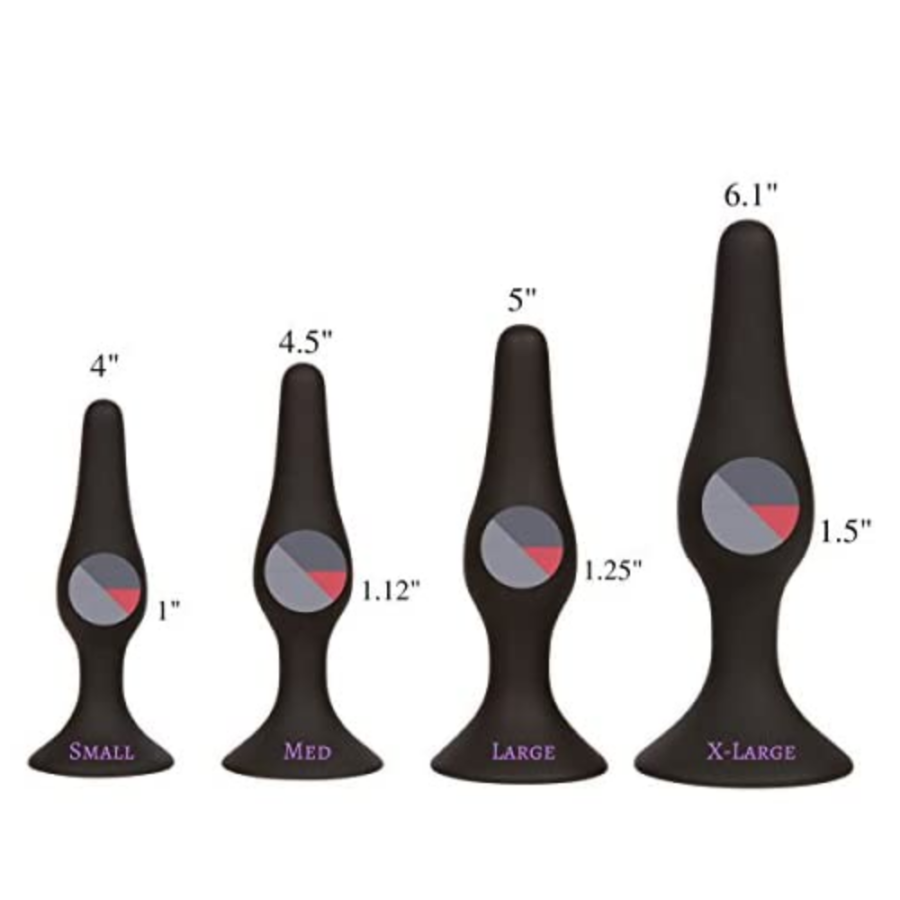 Complete with four butt plugs that gradually increase in size, the Real Vibes Anal Trainer Kit is made with 100% pure silicone so it's soft, flexible and gentle on even the most sensitive skin. If you're interested in adding anal play to your bedroom experiences, there's no better kit to help you get started than the Anal Trainer Kit.
