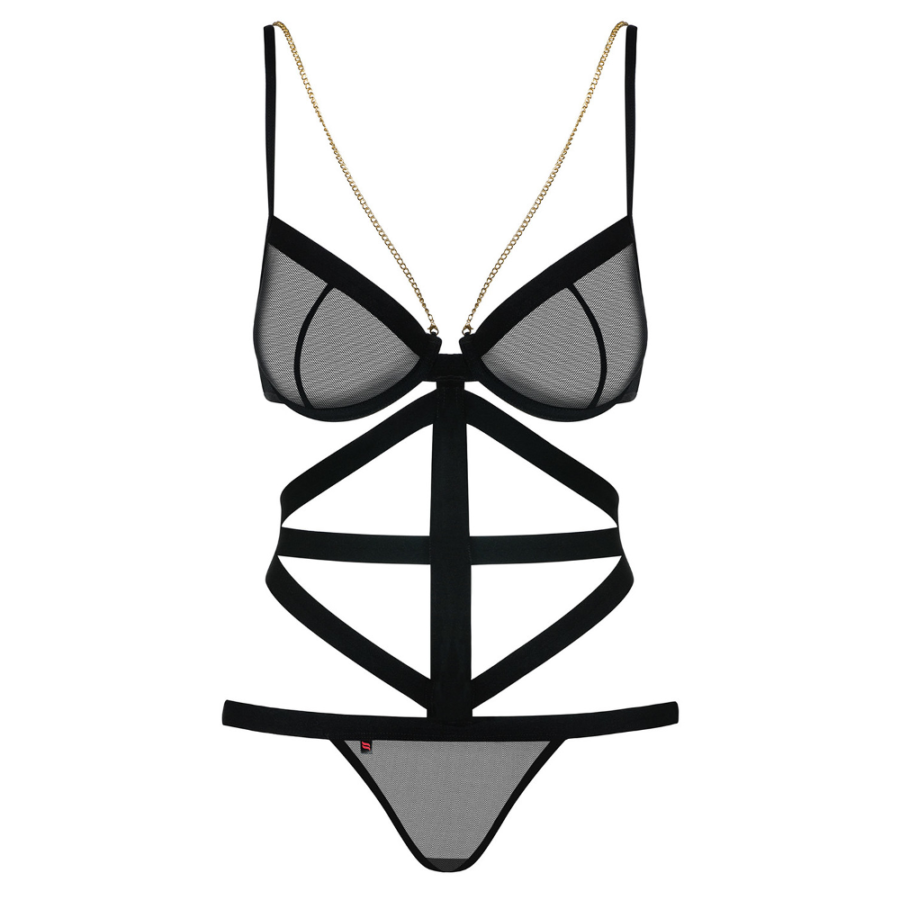 Obsessive Bondy Tempting Body Teddy - Figure-finished body with a delicate bands Design and underwired cups made of transparent material. With adjustable straps for a great fit. Width and elastic bands in the waist and abdominal area and nickel-free jewelry chains.