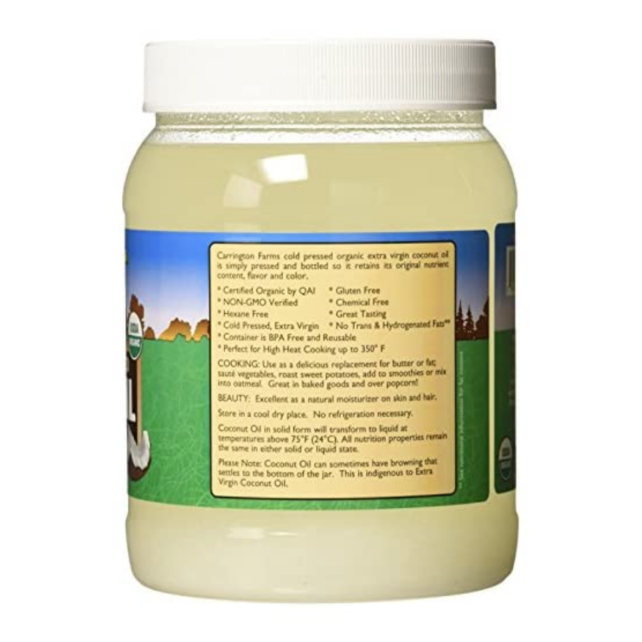 - AMAZING QUALITY - Carrington Farms 54 oz. (ounce) organic, unrefined, cold pressed, gluten free, extra virgin coconut oil starts with only the most pristine coconuts from the Philippines.