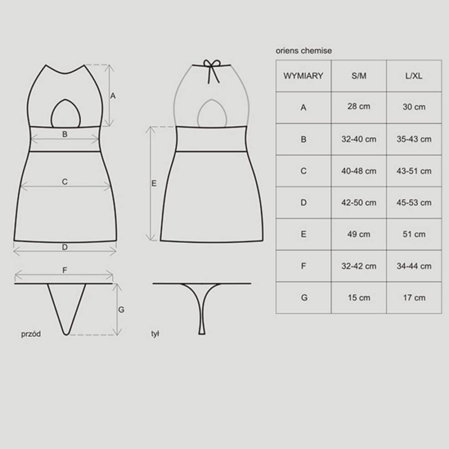 Oriens Chemise with String by Obsessive with interesting cut and nice cleavage. It is tied in the neck and has a perfect fit. With oriental tip and a shiny, blue thread. Sexy lace thong included.