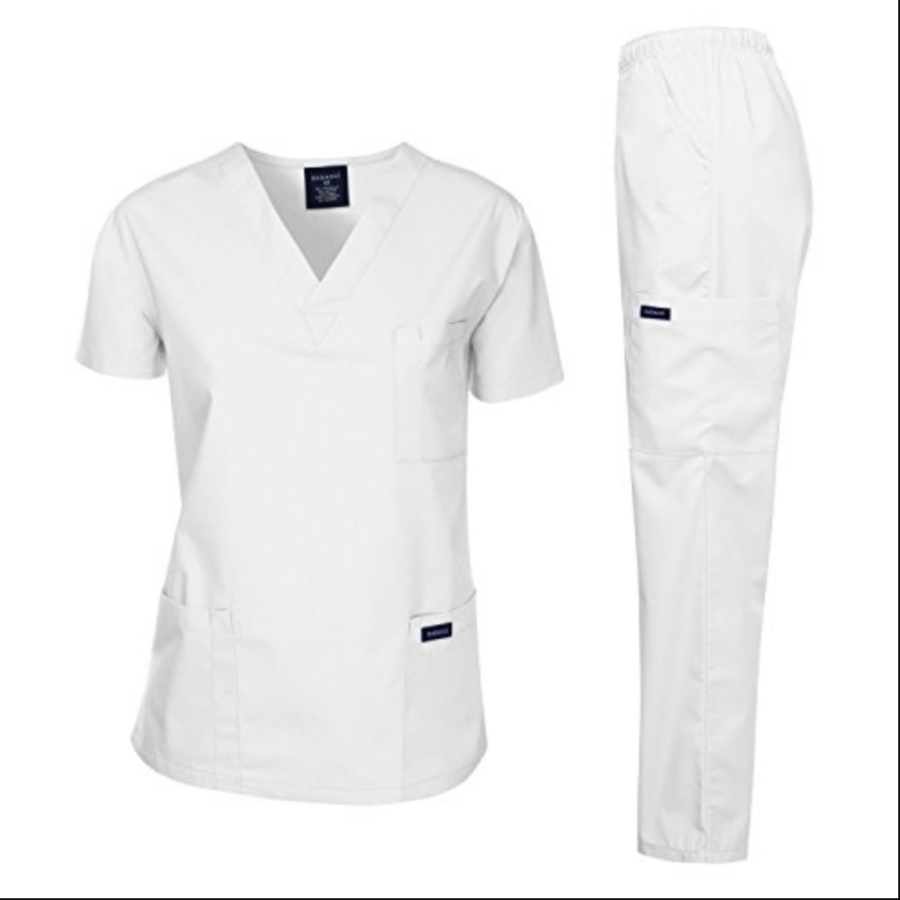 Dagacci Unisex Medical Uniform Scrubs Set, White
