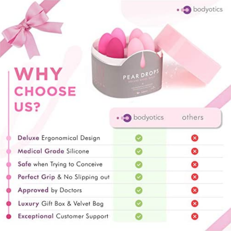 🌸 100% MONEY BACK - LIFETIME GUARANTEE - We're so confident that you'll love your new Bodyotics Pear Drops Deluxe Kegel Exercise Balls that we are not only giving you a 30-Day Money Back Guarantee but ALSO a Lifetime Warranty. So if you're not 100% satisfied with your purchase just let us know and we will give you back your money - NO QUESTIONS ASKED