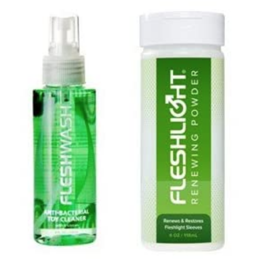 Fleshlight Care Pack: Two Renewing Powders and Two Fleshwash Cleaners. The number one question we get from guys who haven't owned a Fleshlight is "How in the world do you clean them?"