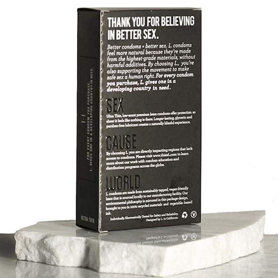 By choosing L. Ultra Thin Vegan-Friendly Lubricated Latex Condoms, You'Re also supporting the movement to make safe sex a human right. For every condom you purchase, l. Gives one to a person in need in a developing country. No harmful chemicals. No exhausted clichés. Just the quality you expect and the authenticity you deserve.