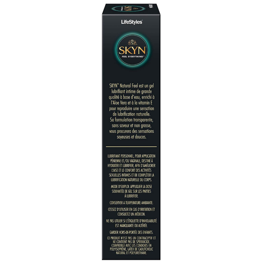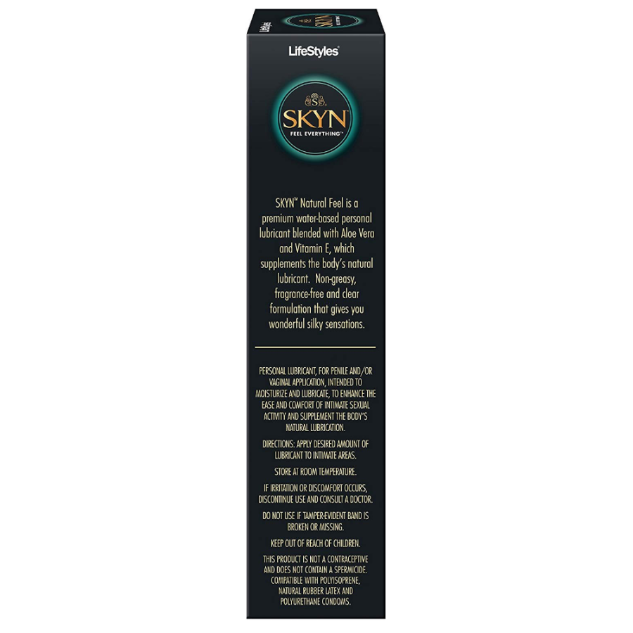 The LifeStyles SKYN Natural Feel Personal Lubricant is a premium water-based personal lube blended with aloe vera and Vitamin E to create a gentle, moisturizing sensation.