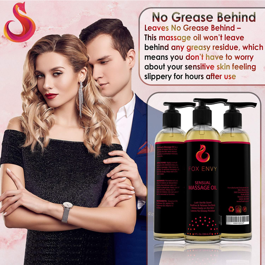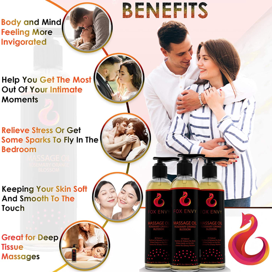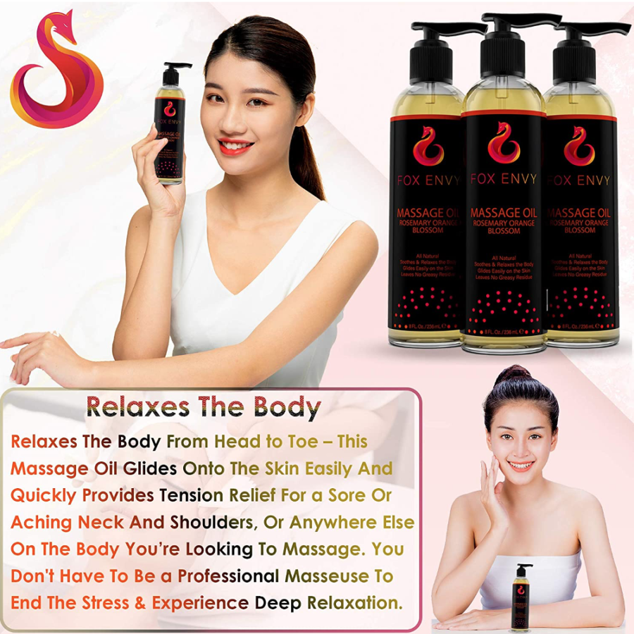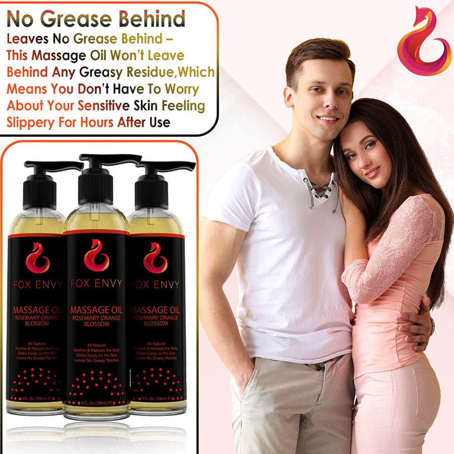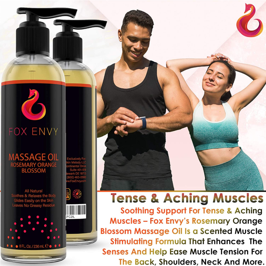 Perfect for Any Moment - Fox Envy's Massage Oil is an ultra-stimulating method to relax the body with soothing sensations for a little stress relief for men and women with muscles that need a good massage. With a sweet rosemary orange blossom scent, this therapeutic oil lotion glides on easily and provides professional quality massages that will keep you coming back for more.