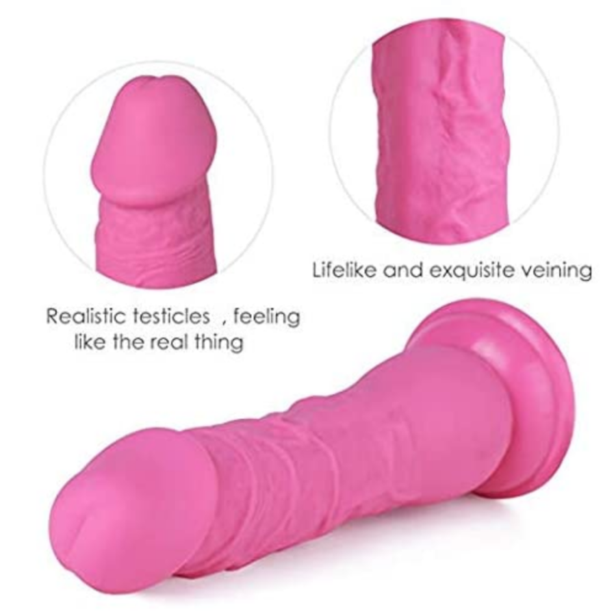 The Louviva Realistic Lifelike Silicone Dildo is designed to provide a life-like experience. It's about 9 inches of insertable length and 2 inches of width. This large dildo is also harness compatible and includes a super-strong suction cup, making the Louviva Realistic Lifelike Silicone Dildo a very versatile sex toy.