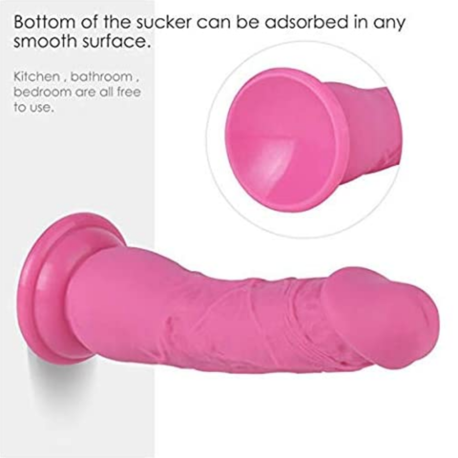 - STRONG SUCTION CUP: Attach the suction cup base to your favorite hard surface, like a chair’s seat or a shower wall, and experience a whole new way to play. The wider base also makes this dildo compatible with most types of strap-on harnesses.