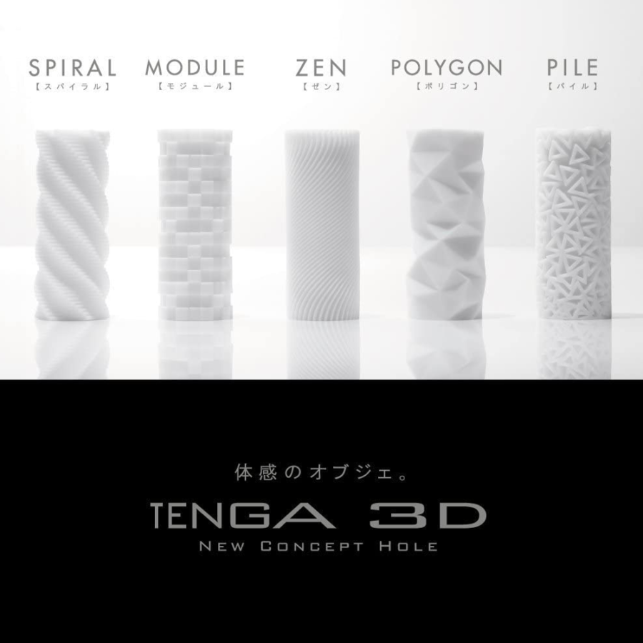 - Includes 5 Different Tenga 3D Sleeves - Spiral, Module, Zen, Polygon, & Pile (1 of each)