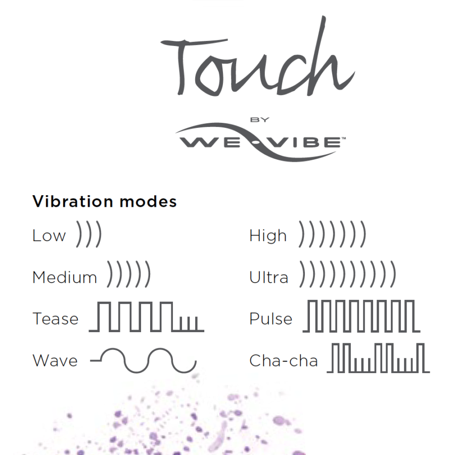 Now sounds good. Enjoy sensual massage with Touch by We‑Vibe whenever you want. With 90‑minute recharge and up to 2 hours of play on a single charge, it’s ready for fun when you