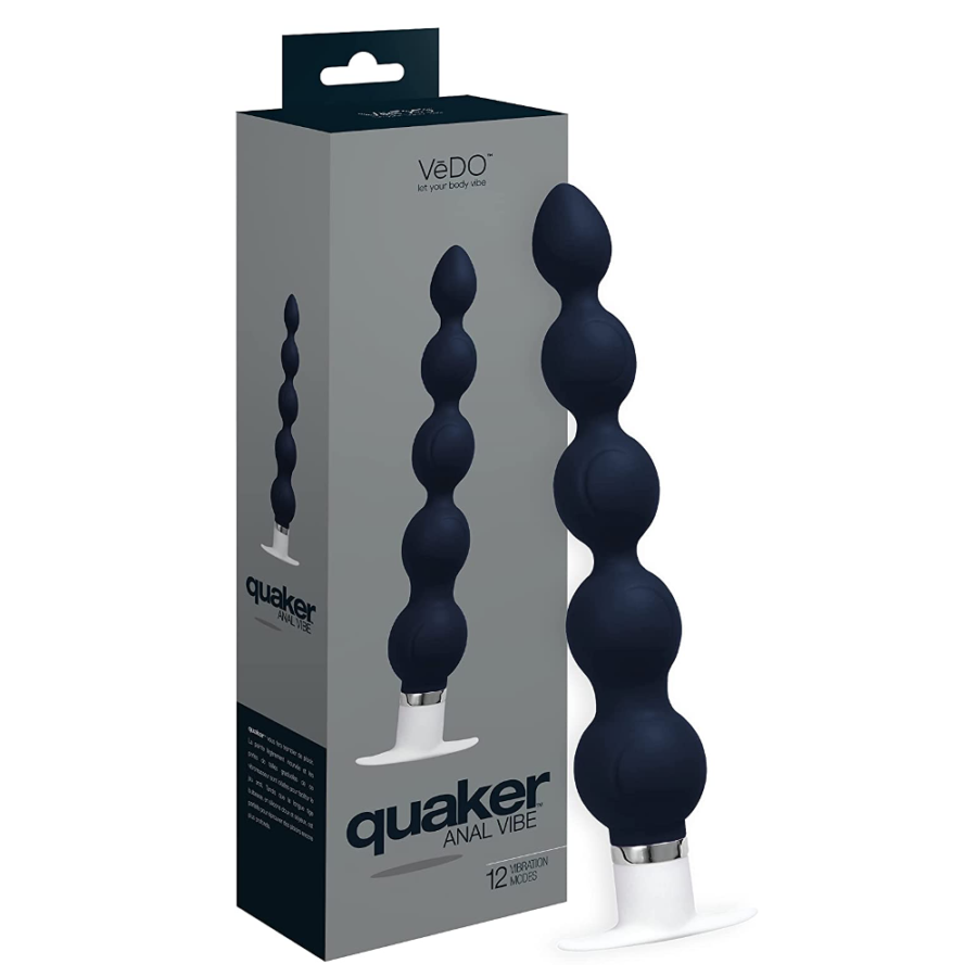 The Vivido/Vedo Quaker Anal Vibe Vibrator rocks your world with its twelve extremely-powerful vibration modes, making you shake and shimmy with pleasure. The curved tip and graduated beads are ideal for easing into anal play, allowing you to enjoy deeper delights.
