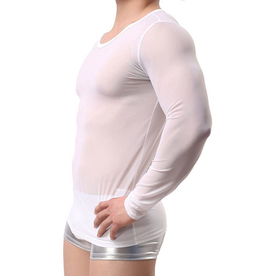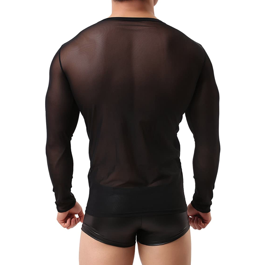 WINDAY Men's Sexy Long Sleeve Mesh Top