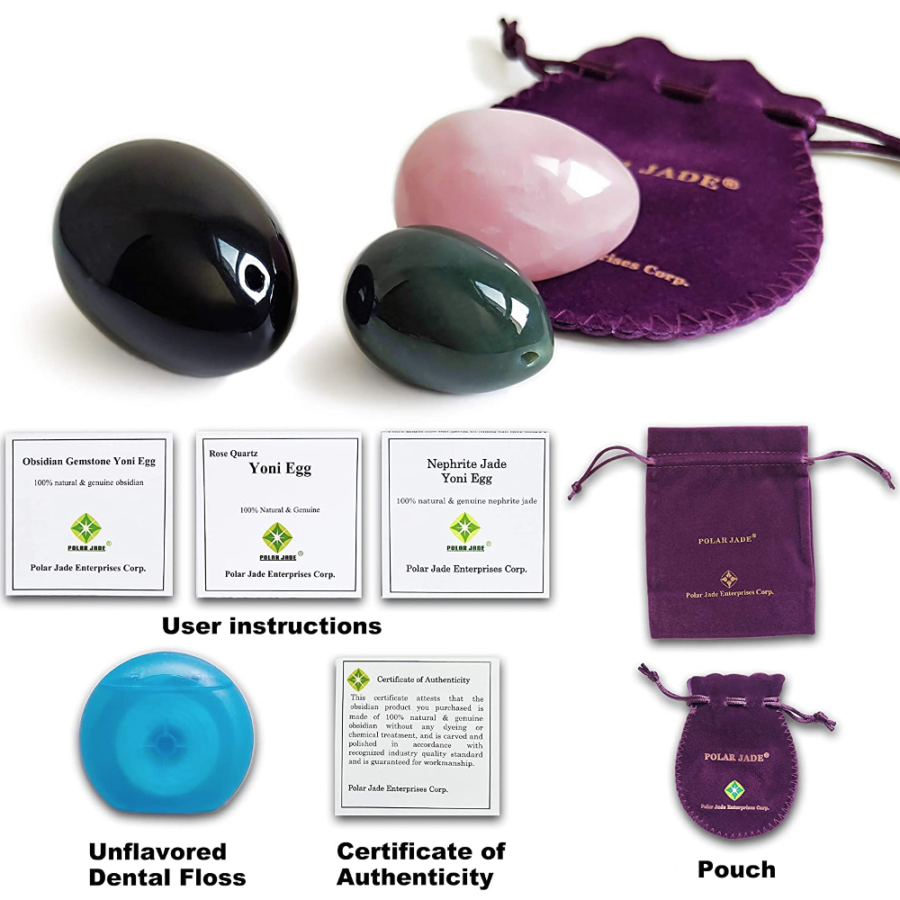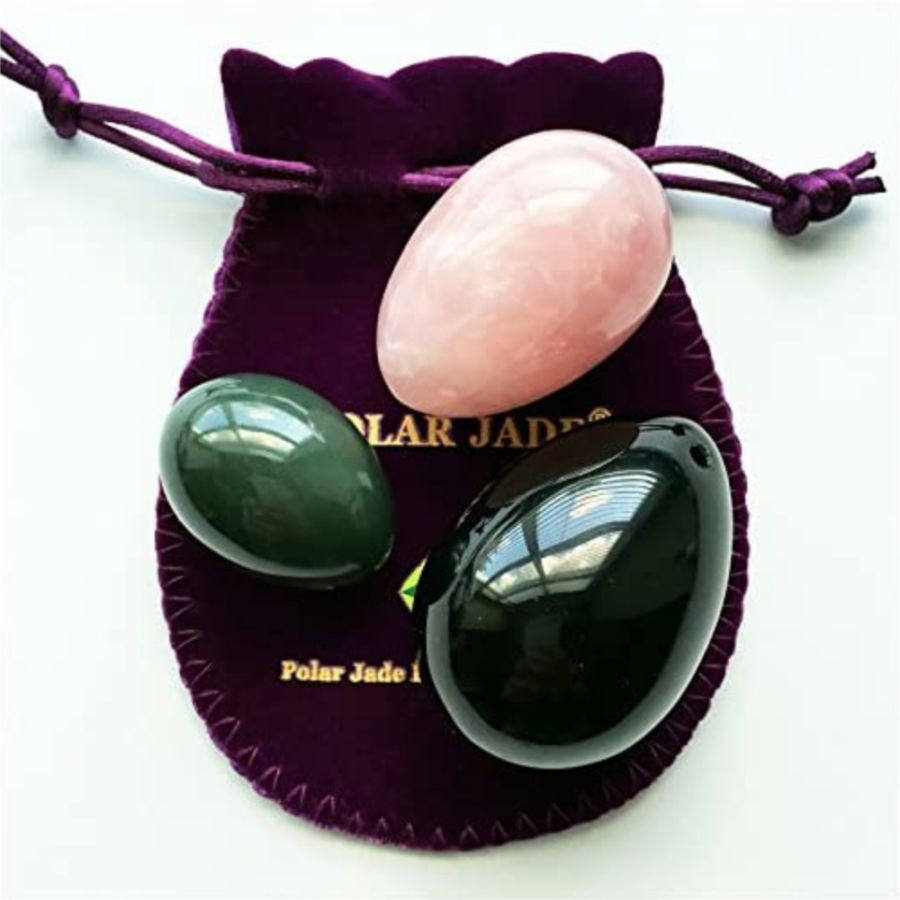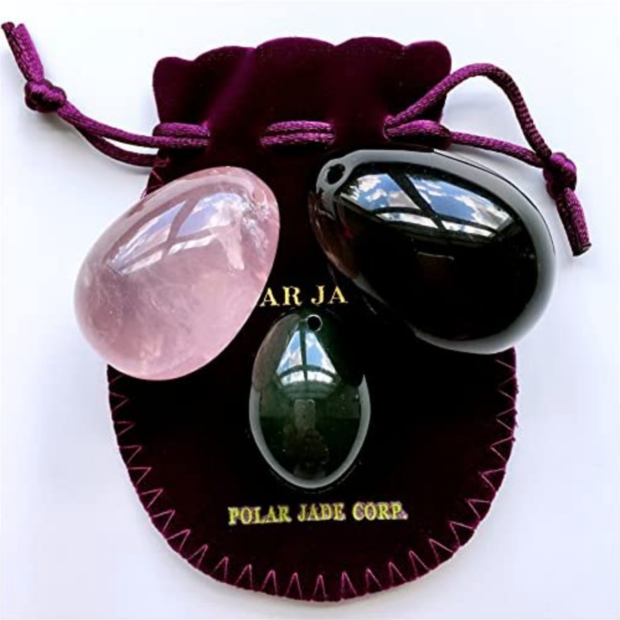 Polar Jade Gemstone Yoni Eggs -Â Nephrite Jade, Rose Quartz and Black Obsidian